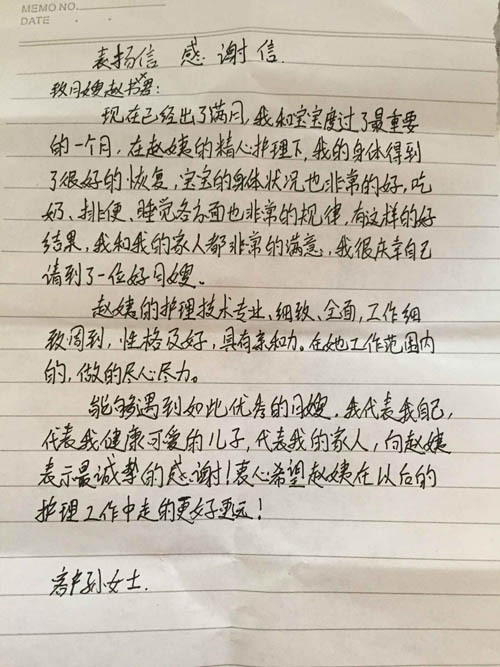 国家标准委7月5日批准发布《家政服务母婴生活护理服务质量规范》《家政服务机构等级划分及评定》两项国家标准,对母婴生活护理服务质量和家政服务机构划分进行了规范与界定,新国标将于2016年2月1日起正式实施。(7月6日《人民日报》) 人民生活水平的不断提高,越来越多的家政需求带动了家政服务业的发展。从而使母婴生活护理工作的人员,也就是我们习惯上所称的“月嫂”,也伴随着这几年生育高峰的到来,成了一个炙手可热的职业,其身价也是一涨再涨。 然而,由于月嫂的素质良莠不齐,整个社会缺乏对月嫂正规的评价体系,月嫂市场比较混乱,月嫂领域的各种乱象也层出不穷。比如,很多月嫂上岗仅凭一张培训证和一张健康证,至于月嫂的等级一说更是家政公司自己的“包装”,很多月嫂不具备应有的职业技能,仅仅经过简单的培训就上岗,往往让雇主在选择上无所适从,纠纷时有发生。北京市朝阳区法院曾经透露,2009年以来,该院受理的涉及月嫂、育儿嫂的家政服务纠纷以年均54.3%的比例激增。 其实,“月嫂”也是个专业技术职业,不是经过短期培训就可以“出师”的。因为“月嫂”不仅需要良好的职业道德,更需要懂得医学常识,能根据产妇和婴儿的个体差异,采用不同的护理方法,使妇女在产前、分娩及哺乳期可以得到必要的支持、照顾和建议。否则,方法不正确,不但能提升对母婴生活的护理服务质量,反而可能影响母婴生活健康,严重的还可能造成一些不可能挽回的后果。 正因如此,此次国家标准委为“月嫂”立规,就很值得我们期待。从内容上看,这两个《规范》对月嫂职业进行了等级划分、星级评定、技能认定等,并详细界定了雇主、保姆和家政公司三方的权利和义务,这将改变故去“凭感觉”选月嫂的模式,从一定程度上满足老百姓的服务需求,也标注着家政行业的日趋规范化。市场的天性是逐利,对家政公司而言,让家政业保持长久的生命力,无疑是最为重要的利益。笔者以为,为“月嫂”立规,既能保护雇主的正当利益,又能确保家政市场的有序发展,还以契约形式明确了公司自身的合法利益,无疑是多赢的明智之举。 附赠感谢信一封以兹鼓励:
