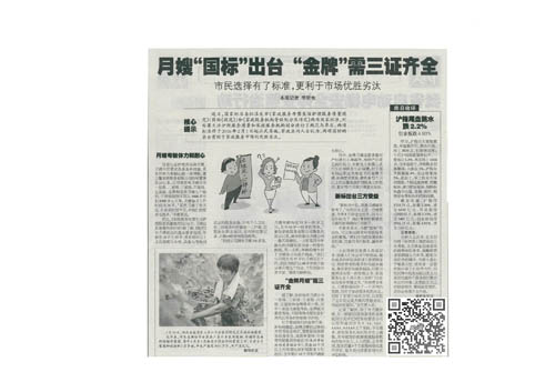 月嫂“国标”出台 “金牌”需三证齐全