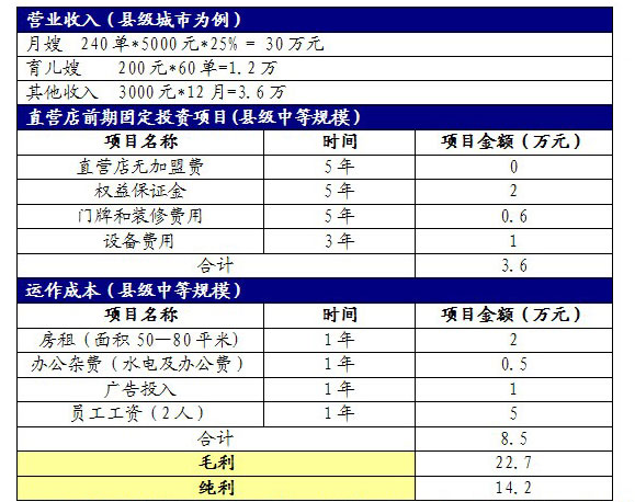 市场上投资形式很多,但很多加盟品牌只关心自己是否能赢利,是否能收到加盟费,爱之馨从经营企业开始,就坚持:把月嫂的人身和利益安全放在首位,把客户的需求放在首位,如今我们的合作连锁经营,也同样坚持把合作伙伴的收益放在首位。我们不断的探索如何才能让合作伙伴尽快收回成本获得利润,而不仅仅是收取一部分加盟费就完事,至加盟商于不顾,这也是我们九年来至今才开始发展连锁的原因。2013年1月18号爱之馨颐和店开业,1月19号爱之馨盐山店开业,5月11号爱之馨南皮店开业,模式均为爱之馨直营特许加盟模式,如今我们欣喜的看到,仅仅两个月的时间,颐和店,盐山店,南皮店均已可以做到收支平衡。第三个月开始收获利润,短短的三个月就开始盈利,爱之馨做到了第三个坚持!