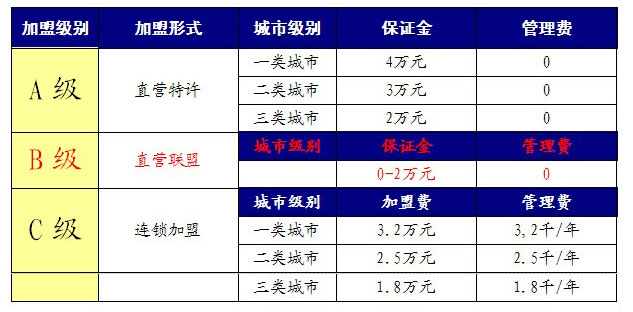 一、加盟级别与费用